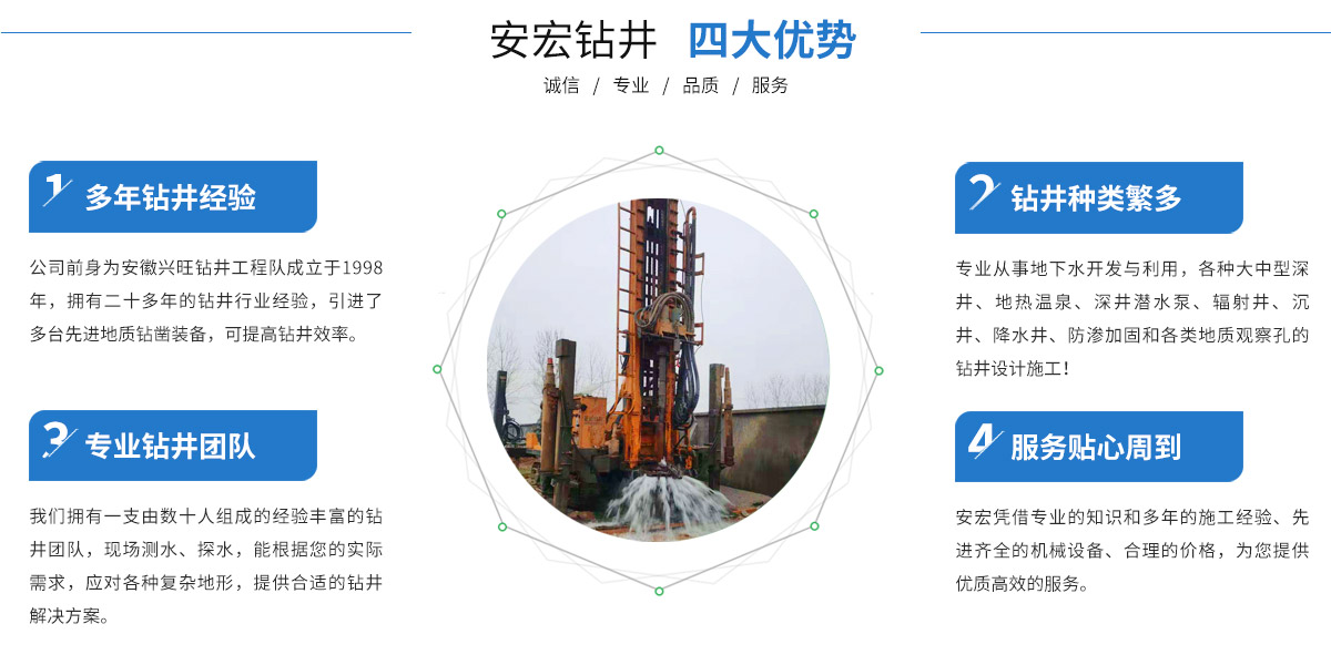 - 寧國市安宏鉆井工程有限公司,前為安徽興旺鉆井工程隊(duì)成立于1998年,公司從事安徽鉆井(宣城打井、寧國打井、蕪湖打井、池州打井、宿州打井、桐城打井、銅陵打井、南陵打井、郎溪打井、廣德打井、績(jī)溪打井、馬鞍山打井等),江蘇鉆井(南京打井、高淳打井...